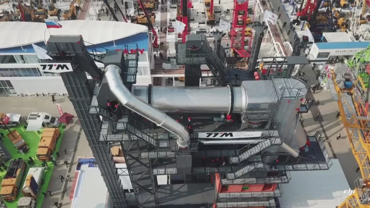 上帝視角觀看鐵拓機(jī)械吸睛展品:逆流式5030型環(huán)保瀝青廠拌熱再生一體設(shè)備